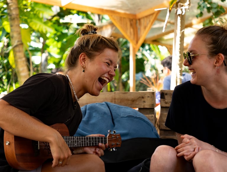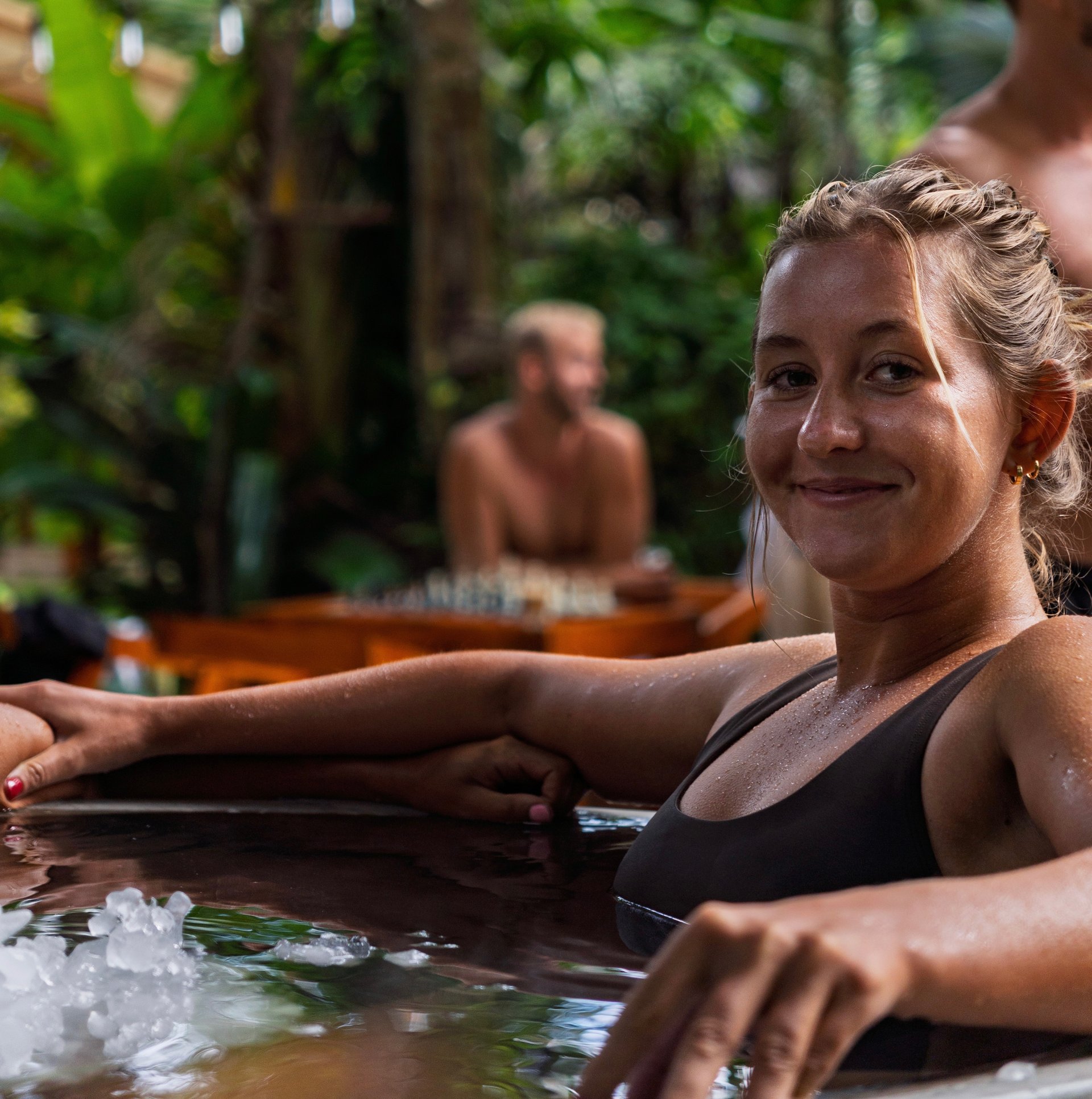 Come stay in our cosy and comfortable dorms or one of our private rooms, join in for family dinners and games, and chill in our epic lush garden. Come enjoy our ice bath, meditation, work-outs and other feel-good stuff to help you chill and find presence, or whatever you might need. We organize daily activities, such as volleyball, beach hangouts & surf sessions.